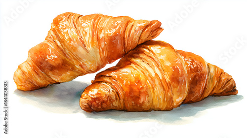 Stack of Fresh Croissants in Watercolor Illustration