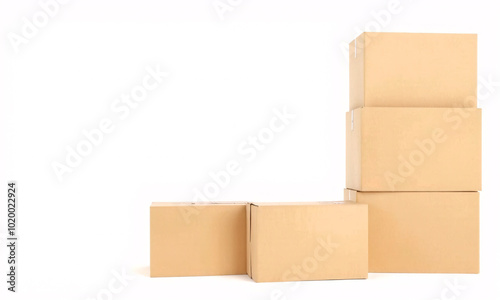 container, stack, isolated, box, cardboard, background, white, moving, pile, cardboard box, gift, heap, group, large, big, 4, brown, closed, cardbox, shop, mail, freight, deliver, storage, distribution, paper, post, shipping, reusing, cargo