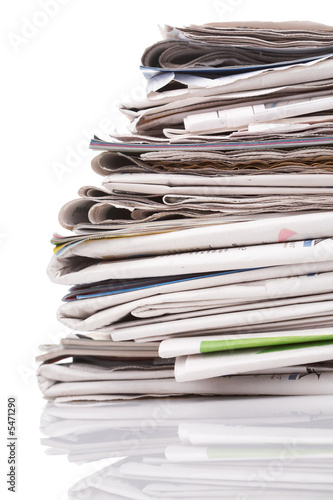 newspaper, stack, white, communication, paper, isolated, isolated on white, newspaper, background, information, pile, nobody, object, media, studio shot, excess, recycling, vertical, mag, heap, closeup, reusing, white background