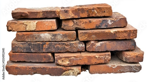 Stack of old bricks with worn and chipped edges, displayed on transparent background, detailed textures, deep earthy colors, crisp focus, clean lines, and natural and decorative appearance.