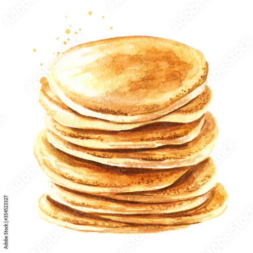 Stack of pancakes. Hand drawn watercolor illustration isolated on white background