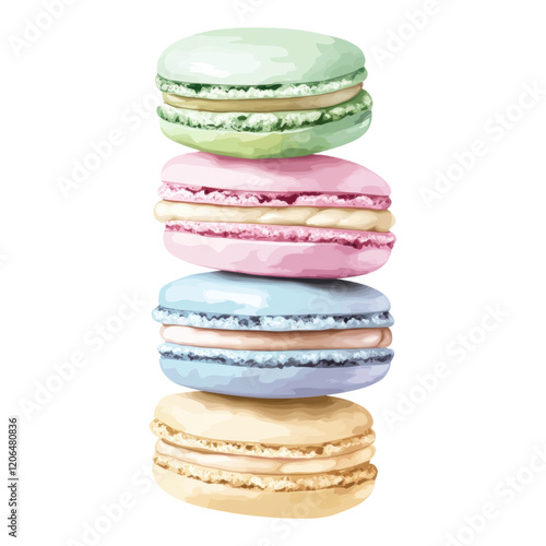 pastel, dessert, sweet, colourful, confectionery, bakery, food, tasty, delicious, treat, stack, cookie, meringue, almond, pink, blue, green, yellow, light, airy, delicate, elegant, epicure, culinary, photo, white background, isolated, closeup, studio shot, macaroon