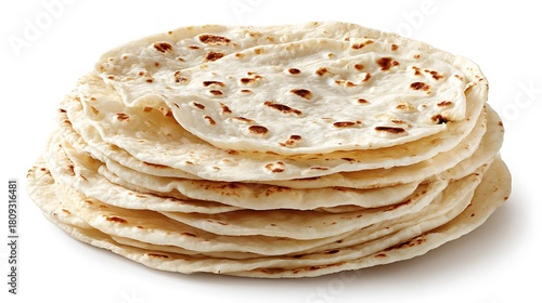 Stack of round flour tortillas isolated on the white background