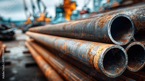 pipe, steel, metal, iron, industrial, tube, cylinder, round, hollow, rust-eaten, rust, orange, brown, texture, surface, rough, heavy, industry, construction, material, warehouse, storage, stack, pile, depth, field, perspective, pattern, repetition, geometry, engineering, supply, logistic, infrastructure, building, manufacture, trade, resource, raw, stock, inventory, background, abstract, grime, old, weathered, strong, structural, quantity