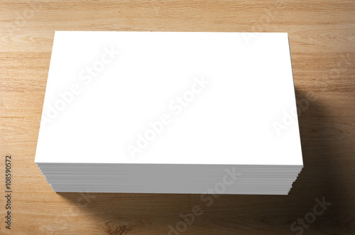 stack of white blank name card on wooden background