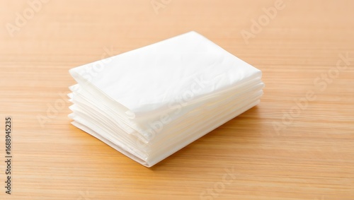 napkin, paper, white, stack, tissue, clean, table, wooden, surface, background, hygiene, sanitary, domestic, household, kitchen, dining, eatery, cafes, folded, square, rectangle, soft, absorbent, disposable, single, object, still life, indoor, closeup, minimalist, simple, neutral, light, shadow, texture, plain, topview