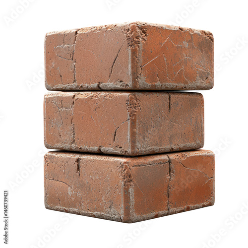 Stacked Cracked Red Bricks Texture.