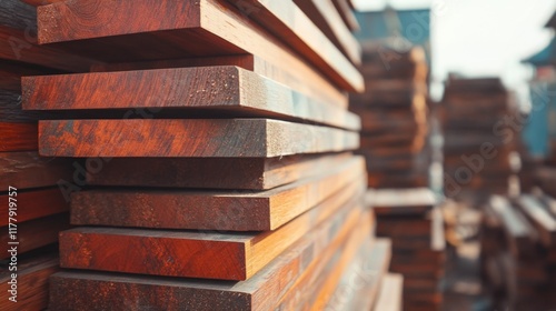 Stacked Lumber in a Warehouse - Close-Up of Wood Products