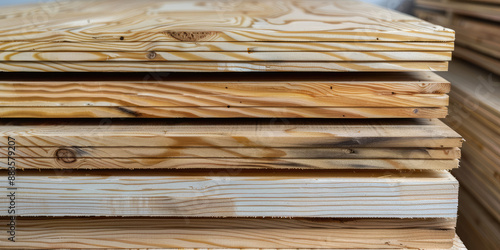 Stacked pine wood planks in a factory or storage. Wood industry Background wallpaper for backing.