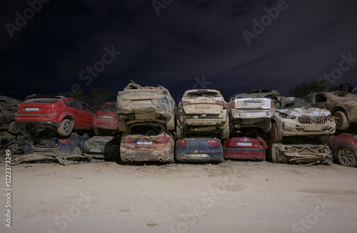 stack, car, wreckage, post, flood, environment, ecology, industry, group, outdoors, valencia, valencia, spain, destruction, disaster, natural, disaster, catastrophy, extreme, weather, hurricane, storm, wind, waste, scrap, metal, stacking, crisis, damage, object, sky, nature, obsolete, heavy, rust-eaten, end, pile, climate, change, protection, power, nobody, motor, vehicle, night, arrangement, broken, collection
