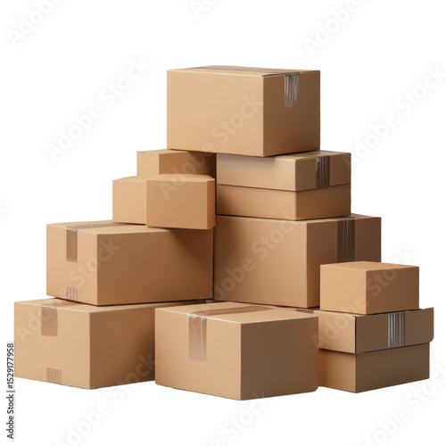 Stacks of cardboard boxes isolated on transparent background