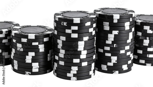 Stacks of poker chips in black and white, ready for high-stakes casino games and gambling ventures