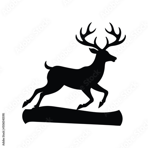 silhouette, vector, stag, log, animal, wildlife, leaping, nature, mammal, majestic, graphic, illustration, design, minimal, line art, black-and-white, clip art, stock, forest, meadow, art, logotype, decor, print, digital, wild, fauna, cervid, action, elegant