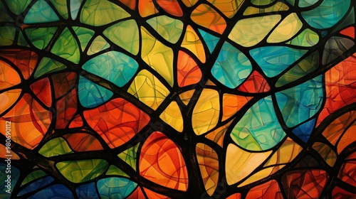 Stained Glass Window with Colorful Geometric Patterns