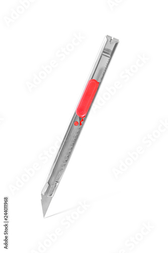 cutter, knife, background, isolated, paper, sharp, white, red, work, metal, office, steel, cut, iron, blade, colours, black, business, object, icon, single, equipment, small, tool, danger, metallic, slice, stainless, utility, shadow