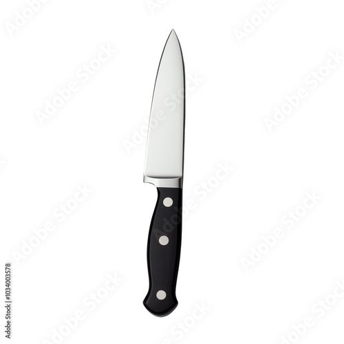 Stainless steel kitchen knife with a sleek black handle, perfect for precision cutting and culinary tasks in any kitchen.