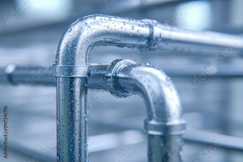 pipe, plumbing, water, steel, droplet, metal, industrial, connection, tube, shiny, infrastructure, facility, liquid, pipeline, engineering, technology, closeup, clean, maintenance, sanitation, fluid, architecture, assembly, tubing, industry, moisture, hygiene, environment, piping, efficiency, bright, system, metalwork, industrialization, waterworks