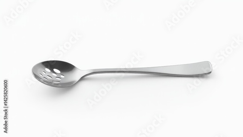 Stainless Steel Slotted Spoon On White