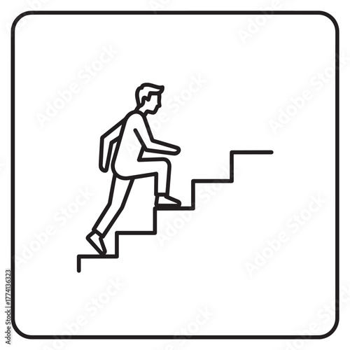 stair, climbing, man, step, career, vector, icon, symbol, line, graphic, design, illustration, achievement, progress, success, challenge, way, path, route, goal, direction, business, development, growth, effort, motivation, isolated, clip art, artwork, element, shape, art, minimalist, modern, simple