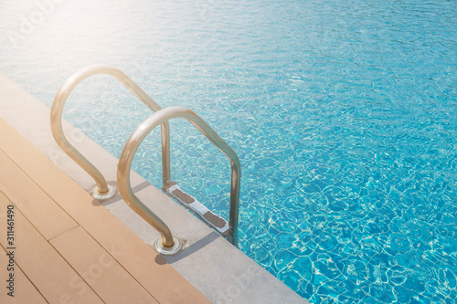 Stairs Ladder and handle down the swimming pool with blue water