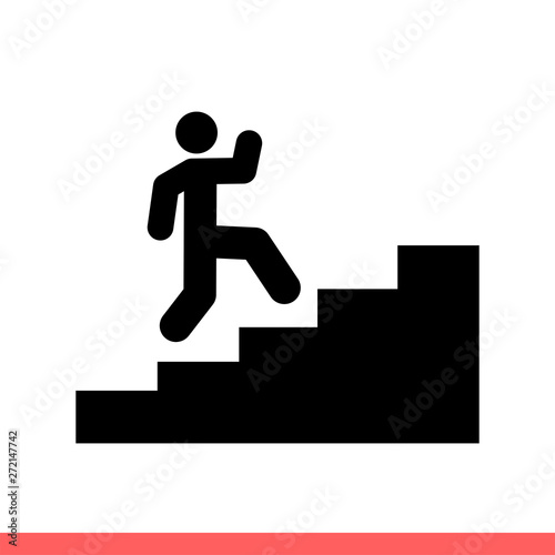 Stairs run vector icon, up symbol. Simple, flat design isolated on white background for web or mobile app