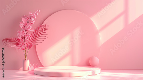 Stand podium wall scene pastel color background, geometric shape for product display presentation. Minimal scene for mockup products