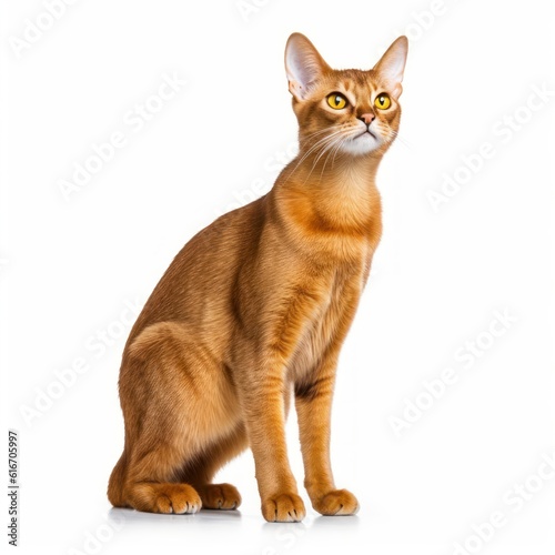 Standing Abyssinian Cat. Isolated on Caucasian, White Background. Generative AI.