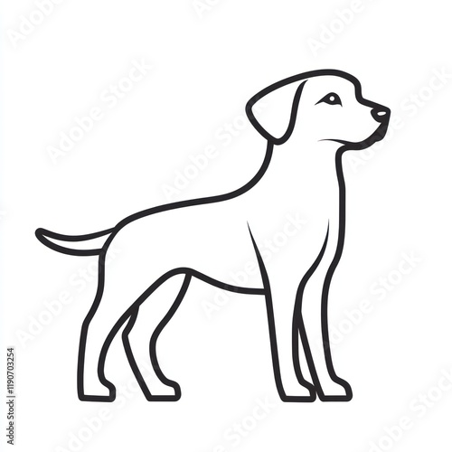 Standing Labrador, line art, white background, pet adoption