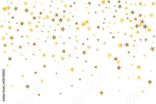 Star confetti. Gold casual confetti background. Bright design pattern.
