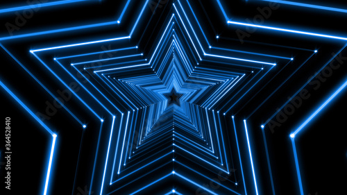 Star Tunnel Neon Light Disco Tube abstract 3D illustration background.