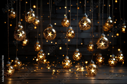 Starry Glow: Gold Stars LED Lights Illuminate the Night in Dazzling Radiance - Generative AI