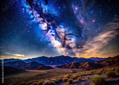 Starry Night Sky over Death Valley National Park, Dramatic Landscape Photography
