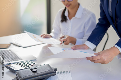 Start up partners are working in casual clothes, discussing the ideas for new strategy of development.