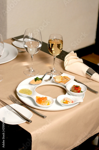 table, eatery, plate, menu, eating, food, meat, wine, white, fork, spoon, knife, glasses, dinner, appetence, appetiser, chef, closeup, cooked, cooking, cookery, culinary, decoration, deli, delicious, diet, dish, eat, fish, fresh, freshness, fried, epicure, health, healthy, herb, ravenous, italian, kitchen, lunch, luxury, macro, meal, natural, nourishment, organic, prepared, raw, receipe