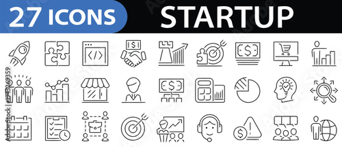 startup, icon, new, business, launch, innovation, entrepreneurship, finance, teamwork, technology, growth, idea, rocket, puzzle, code, deal, investment, money, shop, career, team, project, management, strategy, target, meeting, brain, mind, light bulb, calendar, checklist, search, computer, cart, support, collaboration, network, global, people, dashboard, analysis, planning, development, success, achievement, funding, venture, start