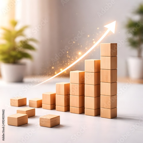 financial success, entrepreneurship, startup, progress, concept, rising, wooden, block, upward, trend, arrow, business, growth, block, chart, modern, office, financial, bar, graph, finance