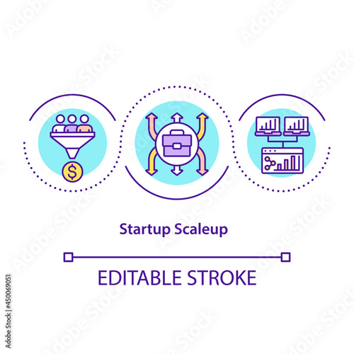 Startup scaleup concept icon. Company growth and business development. Successful strategy. Start up launch abstract idea thin line illustration. Vector isolated outline color drawing. Editable stroke