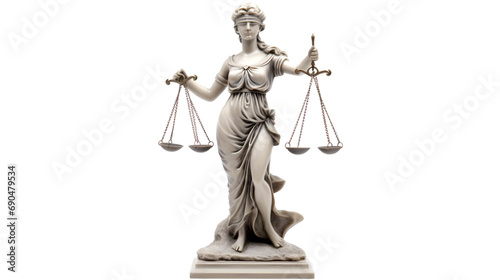 Statue Of Lady Justice isolated on white background. Generative Ai.