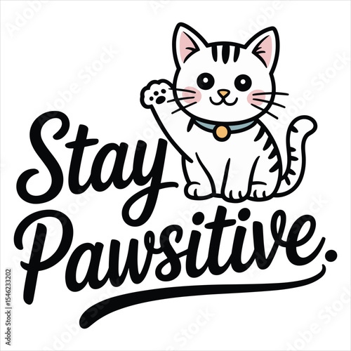 Stay Pawsitive Cute Motivational Cat T Shirt for Pet Lovers