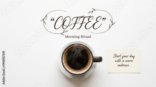 Steaming Cup of Coffee with "Morning Ritual" Text Above and "Start with" Note