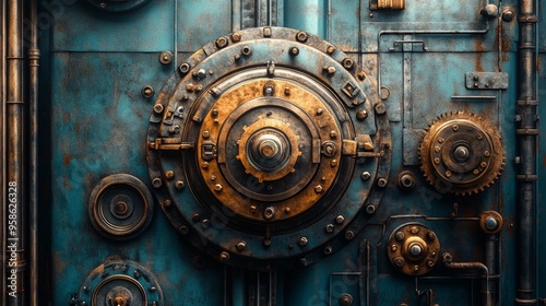 gear, cog, wheel, metal, texture, background, grunge, industrial, rust-eaten, brass, blue, green, abstract, design, technology, vintage, machinery, pattern, antique, science fiction, fantasy, clockwork, intricate, detailed, mechanical, futuristic, old, aged, weathered