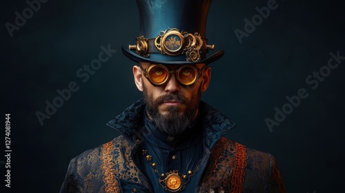 male, portrait, hat, goggles, victorian, fashion, gear, vintage, costume, clockwork, mechanic, eyewear, brass, detailed, ornate, artistic, stylish, elegant, retro, posh, unique, character, bearded, mysterious, elaborate, intricate, dark, gentleman, decor, creative, design, culture, old-fashioned, alternative, fantasy, accessory, expression, attire, clothing, sophisticated, imaginative, inspired, aesthetic