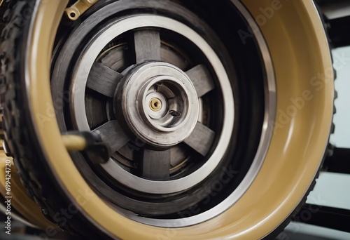 Steel parts for industrial machinery round shape. Selective toning. Close up.