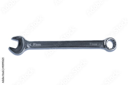 Steel wrench on white background
