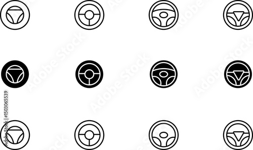 Steering wheel icons set design elements various styles simple elegant vehicle automotive transportation control driving interface user graphic minimalist symbols