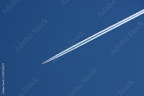 pollution, jet, contamination, aviation, air, aircraft, aeroplane, altitude, background, blue, civil, clear, cloud, commercial, day, daylight, daytime, environment, flight, fluffy, fly, freedom, global, high, international, line, 1, outdoors, plane, single, sky, stele, straight, stream, tour tourism, traffic, trail, trail, transport, transportation, travel, vacation, vapour, arousing, white