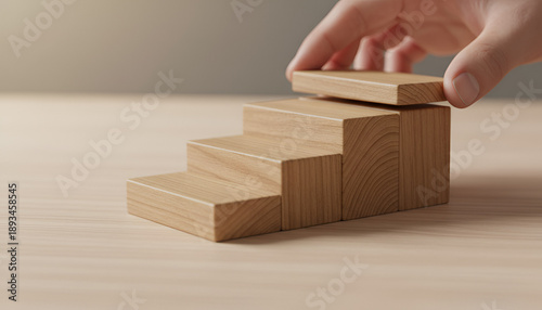 growth, progression, staircase, stair, wooden blocks, step by step, ascent, leadership, planning, strategy, goal, ambition, motivation, productivity, transformation, momentum, trajectory, rising, advancement, success, achievement, performance, execution, workplace, office, design, texture, wood grain, craft, minimal, modern, inspirational, roadmap