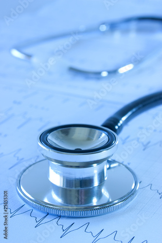 stethoscope, check-up, medicine, equipment, technology, research, science, work tool, clean, blue-toned, metal, medical supplies, medical equipment, analysing, cardiology