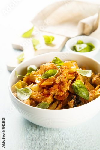 Stew with fresh green basil