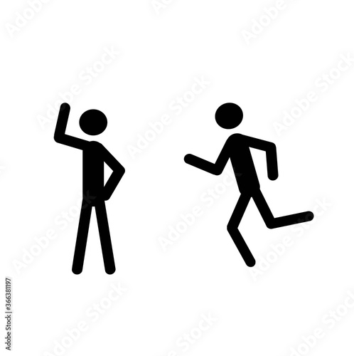Stick man is standing, running. Silhouette. Icon of a human figure.